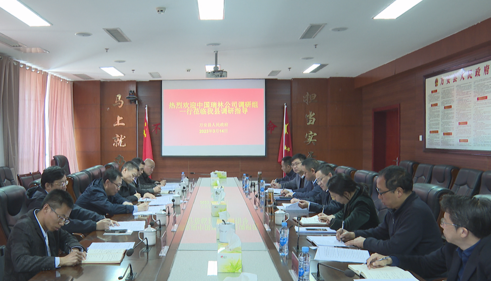 在万安调研过程中,章晓波一行还与万安县委副书记、县长巫太明及部分县直单位有关负责人进行友好会谈。巫太明首先对章晓波一行的到访表示欢迎,对中国瑞林长期以来关心支持万安县经济社会发展表示衷心感谢。巫太明表示,万安县将以中国瑞林在万安定点帮扶为契机,进一步深化交流合作,同时希望中国瑞林发挥优秀的人才和技术资源优势,在城市规划、污水管网、园区提升改造、项目管理、人才培训等方面提供更多的支持和帮助。章晓波指出,经过多年的帮扶,中国瑞林与万安县结下了深厚友谊,公司将一如既往地发挥自身优势,拓展合作路径,在项目管理、人才培训、规划设计、帮扶服务等方面给予更多的关心支持,助推万安经济社会高质量发展。