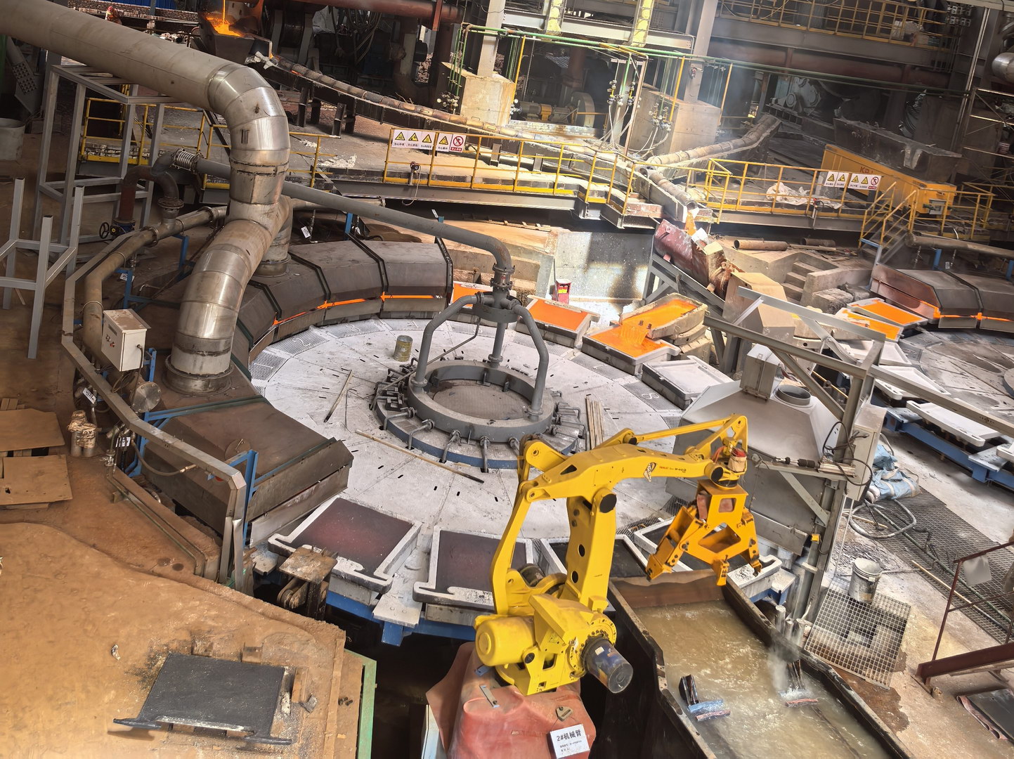 易门铜业阳极精炼节能减排项目,承载着提升生产效率、降低能耗以及减少污染物排放的重大使命。在项目实施过程中,中国瑞林充分发挥自身技术优势,为项目提供了阳极炉、机器人取板圆盘浇铸机等一系列先进设备。其中,阳极炉作为核心设备,其高效的精炼工艺能够有效提升铜的纯度,减少杂质排放和环集烟气低空污染,助力项目实现节能减排目标。