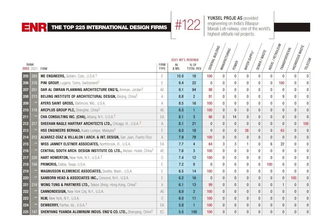 China Nerin Ranked Among ENR 2022 Top 225 International Design Firms