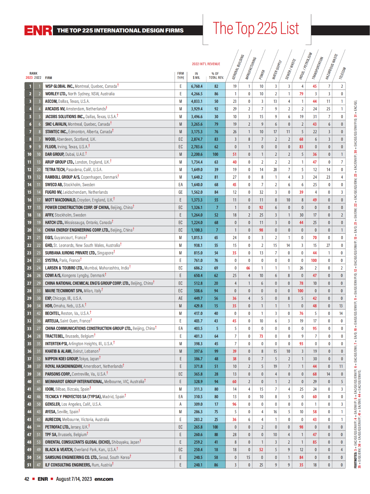 According to a news release by China International Contractors Association, Engineering News-Record (ENR) recently unveiled its Top 225 International Design Firms and Top 150 Global Design Firms rankings for 2023 a total of 23 companies from Mainland China have been listed in the Top 225 International Design Firms, and the number of listed companies is the same with that in 2022. Among them, China Nerin ranked 125th, rising 17 spots from its previous year's position.