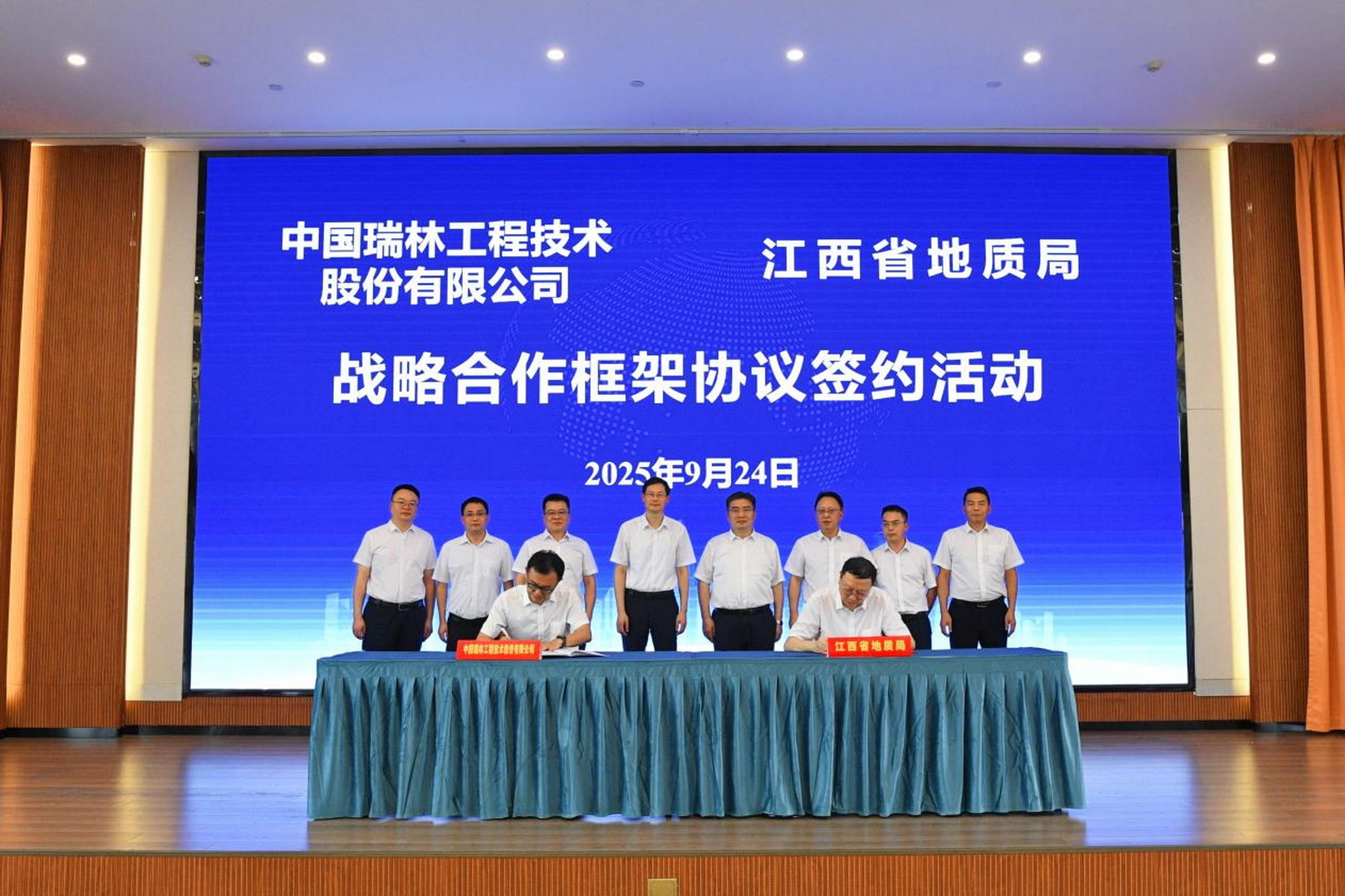 9月24日,乐动网站(以下简称“中国瑞林”)与江西省地质局(以下简称“省地质局”)签订战略合作框架协议。中国瑞林党委书记、总经理吴润华,省自然资源厅党组成员、省地质局党组书记饶清华出席仪式并致辞,中国瑞林党委委员、副总经理刘奕与省地质局党组成员、副局长吴俊华代表双方签约。